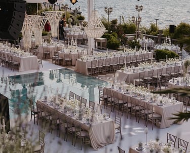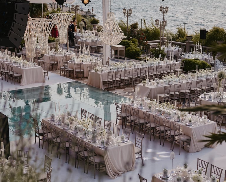 Çarpıcı Giriş ve Podyum Tasarımları: İster düğün olsun, ister ürün lansmanı; mekan girişi, misafirlerinizin etkinliğe dair ilk izlenimidir. Boğaz'a uzanan göz alıcı bir podyum, aynalı yüzeyler veya özel bir karşılama alanı tasarımı ile misafirlerinizi adeta bir rüyaya adım atmaya davet ediyoruz.