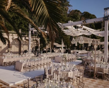 Masanızdaki Gastronomi Sanatı: Masa düzenleri bizim için estetik ve işlevselliğin buluştuğu noktadır. Özel tasarım runnerlar, el yapımı porselenler, kristal kadehler ve kişiselleştirilmiş menü kartları... Bütün bu elementler, bir araya gelerek gastronomik deneyimi dekoratif bir zirveye taşır. Sandalyelerden masalara, örtülerden şamdanlara kadar her seçim, konseptin ruhunu yansıtan bir titizlikle yapılır.
