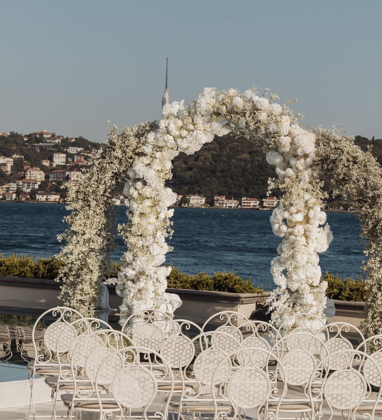 Mekânın Büyüsü: Four Seasons Bosphorus'un büyülü terasları, denize sıfır konumu ve ihtişamlı balo salonları, en küçük detayına kadar kusursuzluğu garanti eder. Bu eşsiz fonda, çiftlerimizin aşk hikayesini bir sanat eserine dönüştürdük.